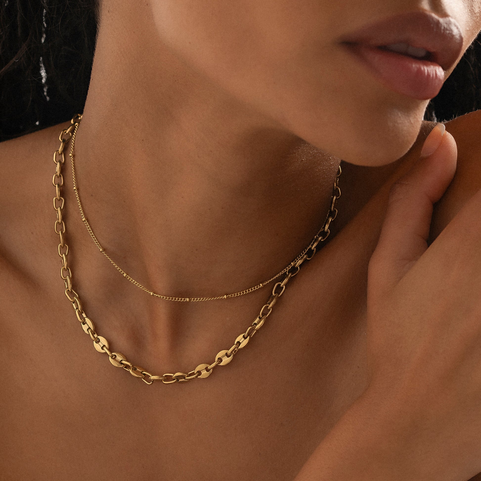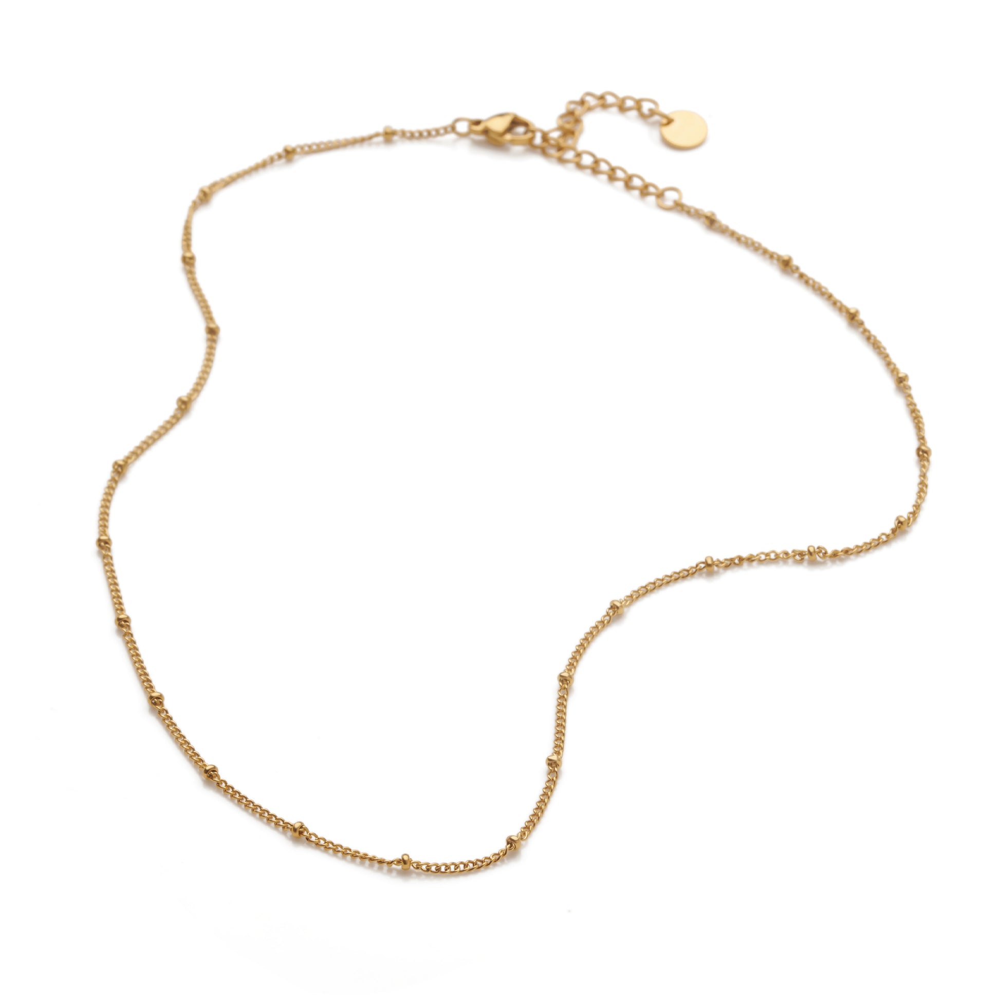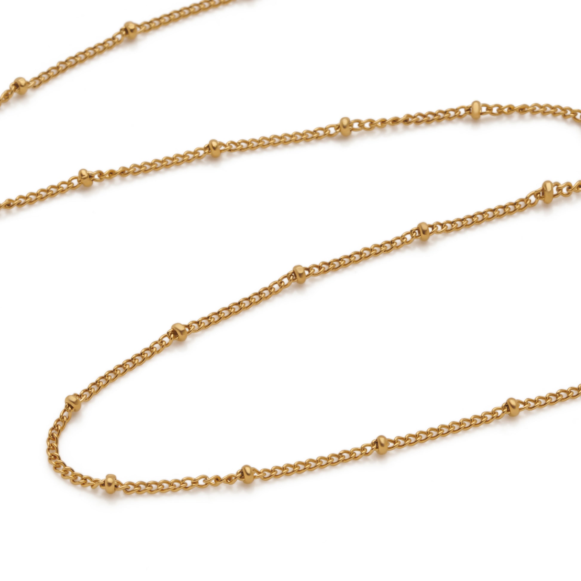 Refined, minimal, and endlessly versatile — this 14k gold-plated stainless steel chain is a timeless staple. Designed with delicate fixed bead accents along a slender chain, it adds just the right touch of texture and shine to any look.