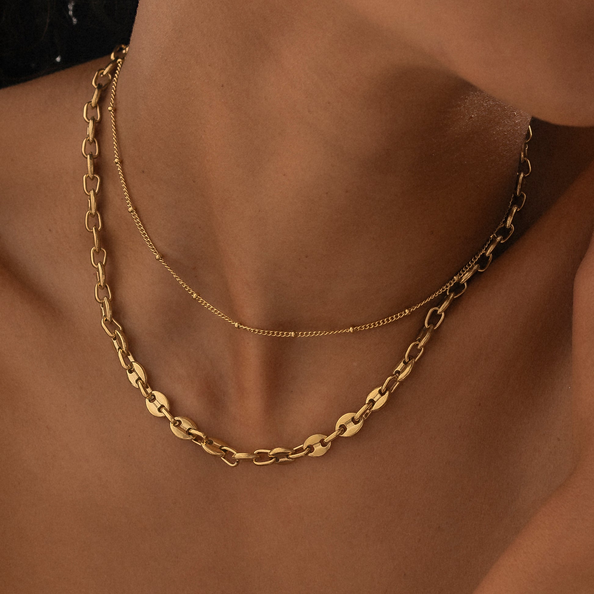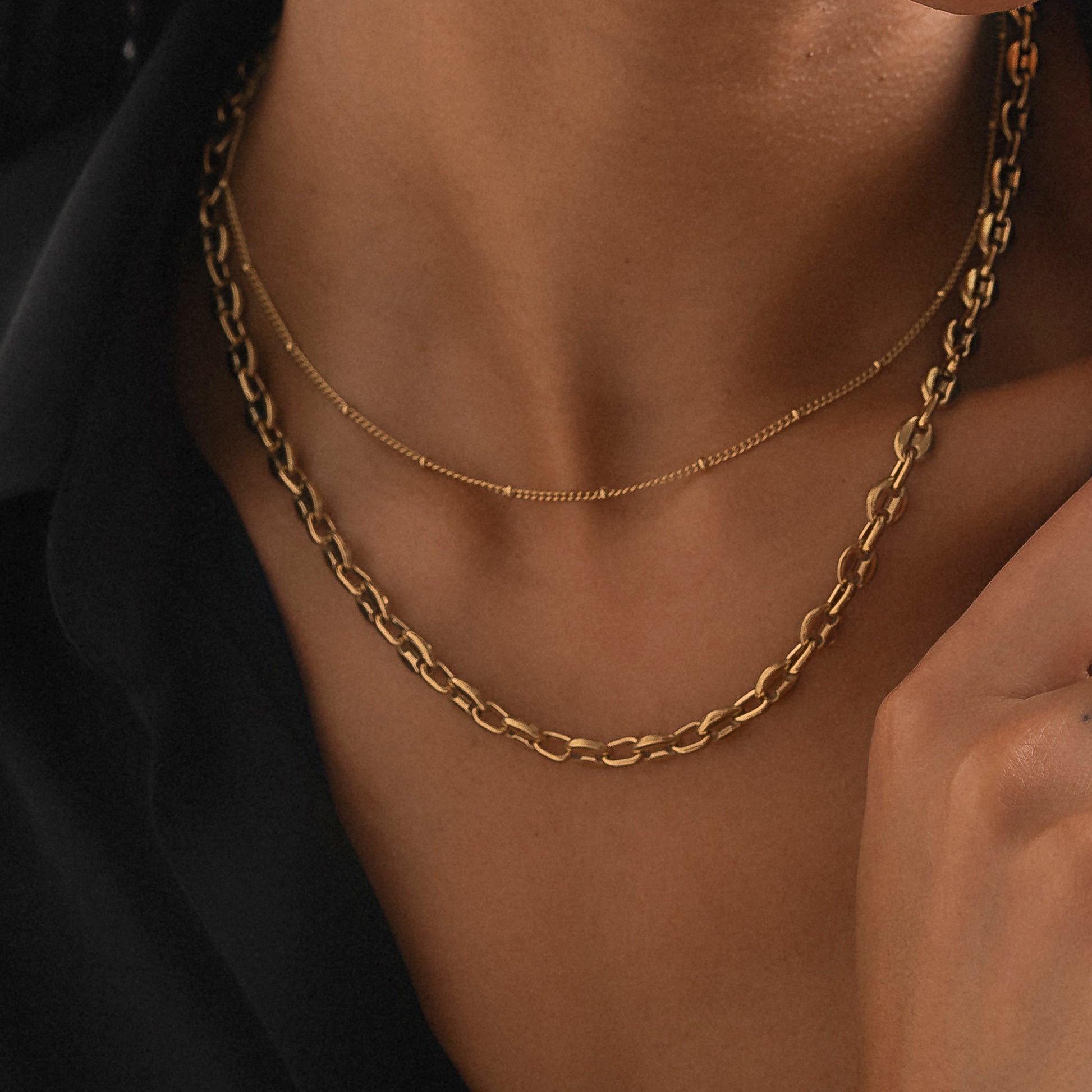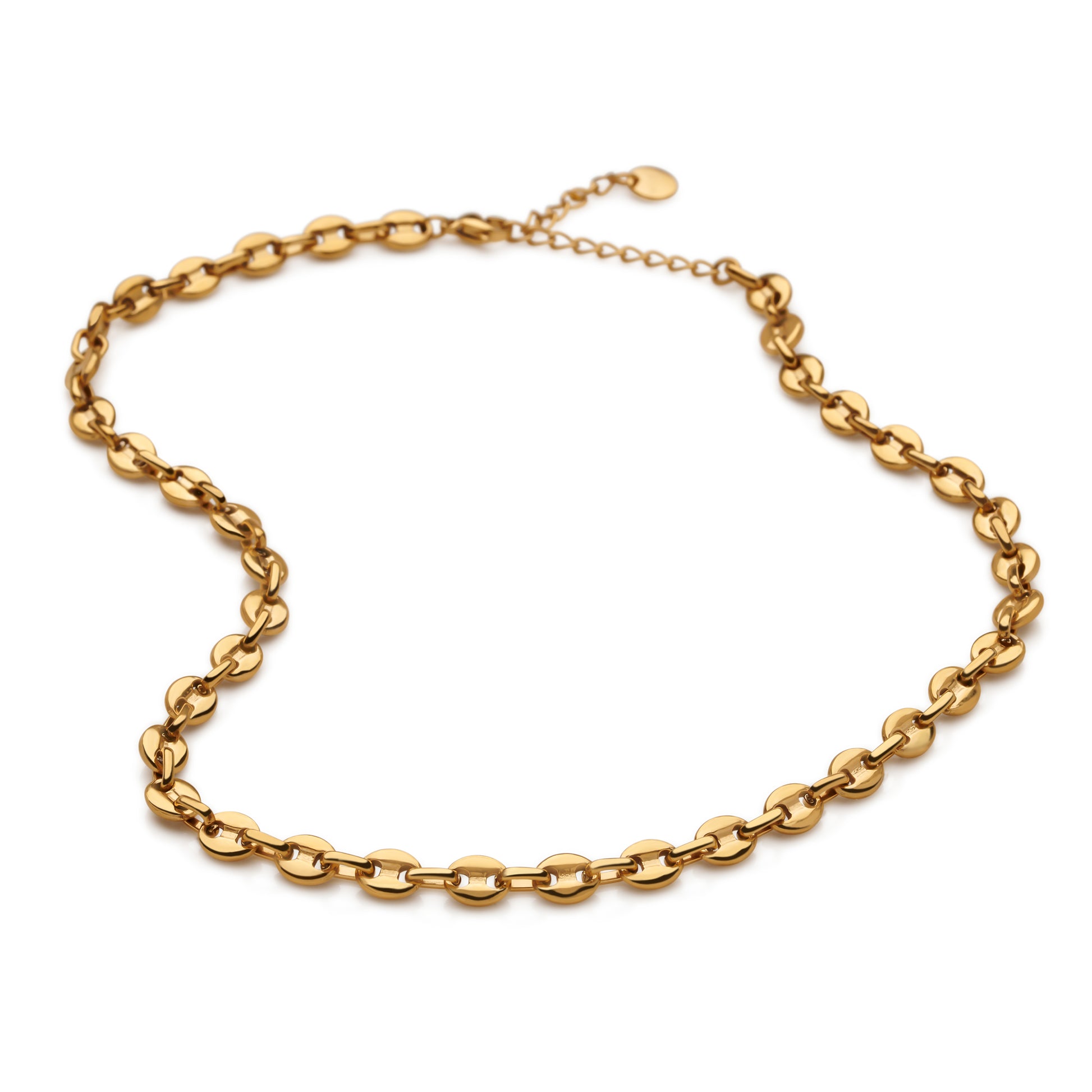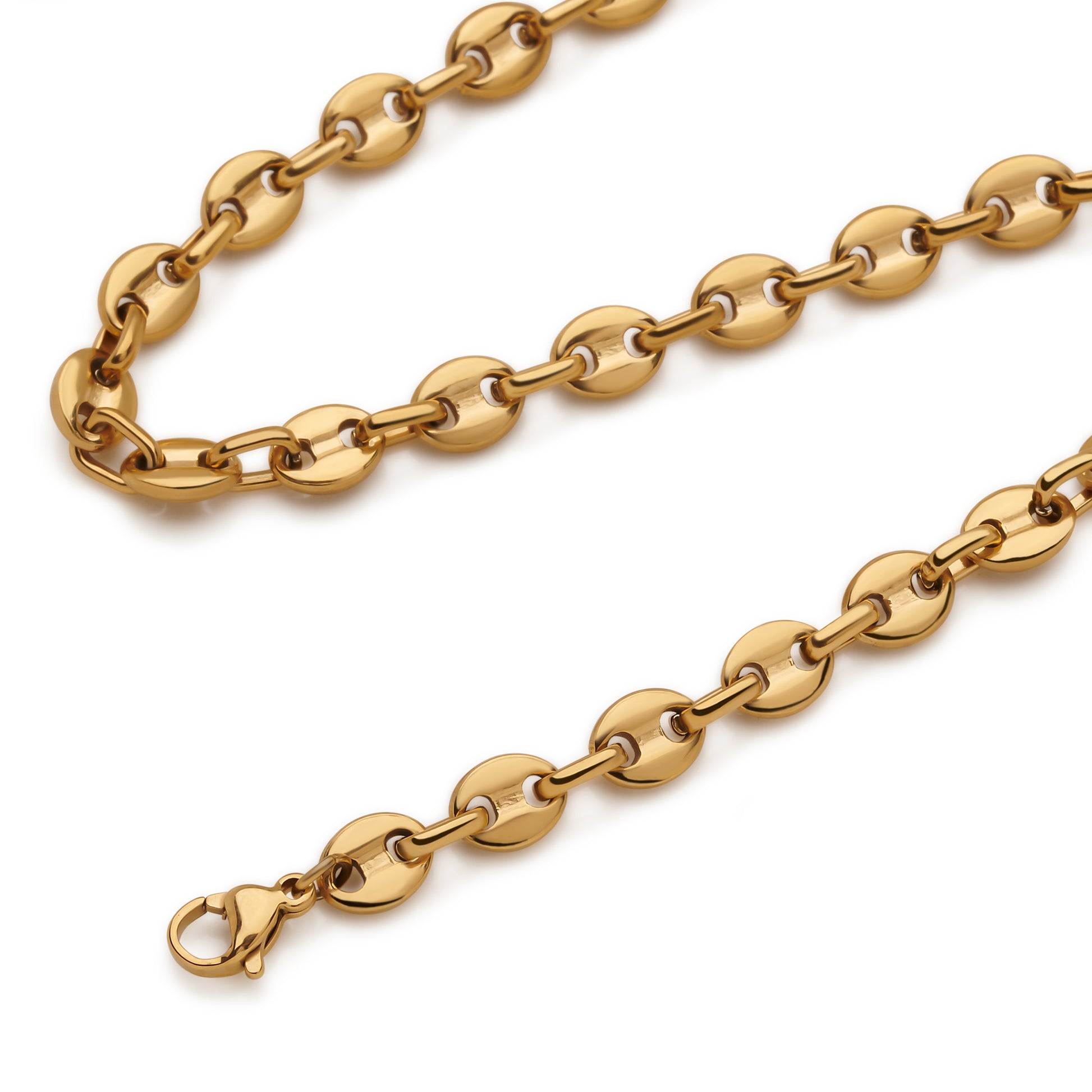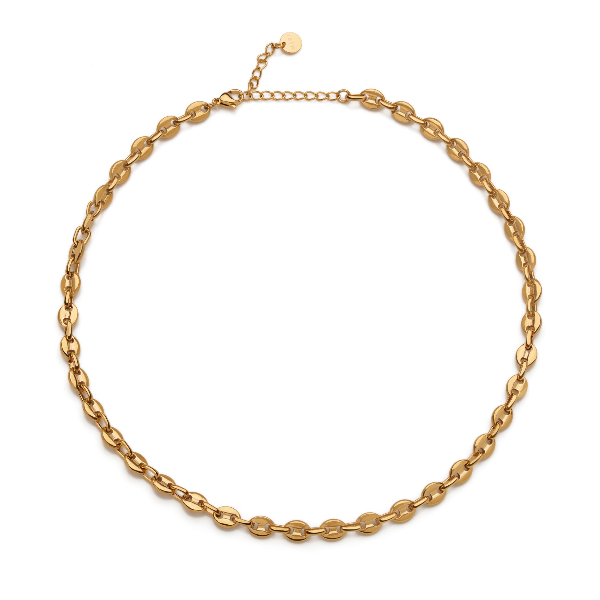 Strong lines. Smooth polish. Timeless appeal. This 14k gold-plated stainless steel mariner link chain is a modern classic, designed with bold, interlocking links inspired by nautical chains. Finished with a secure lobster clasp, it delivers effortless style with everyday durability.