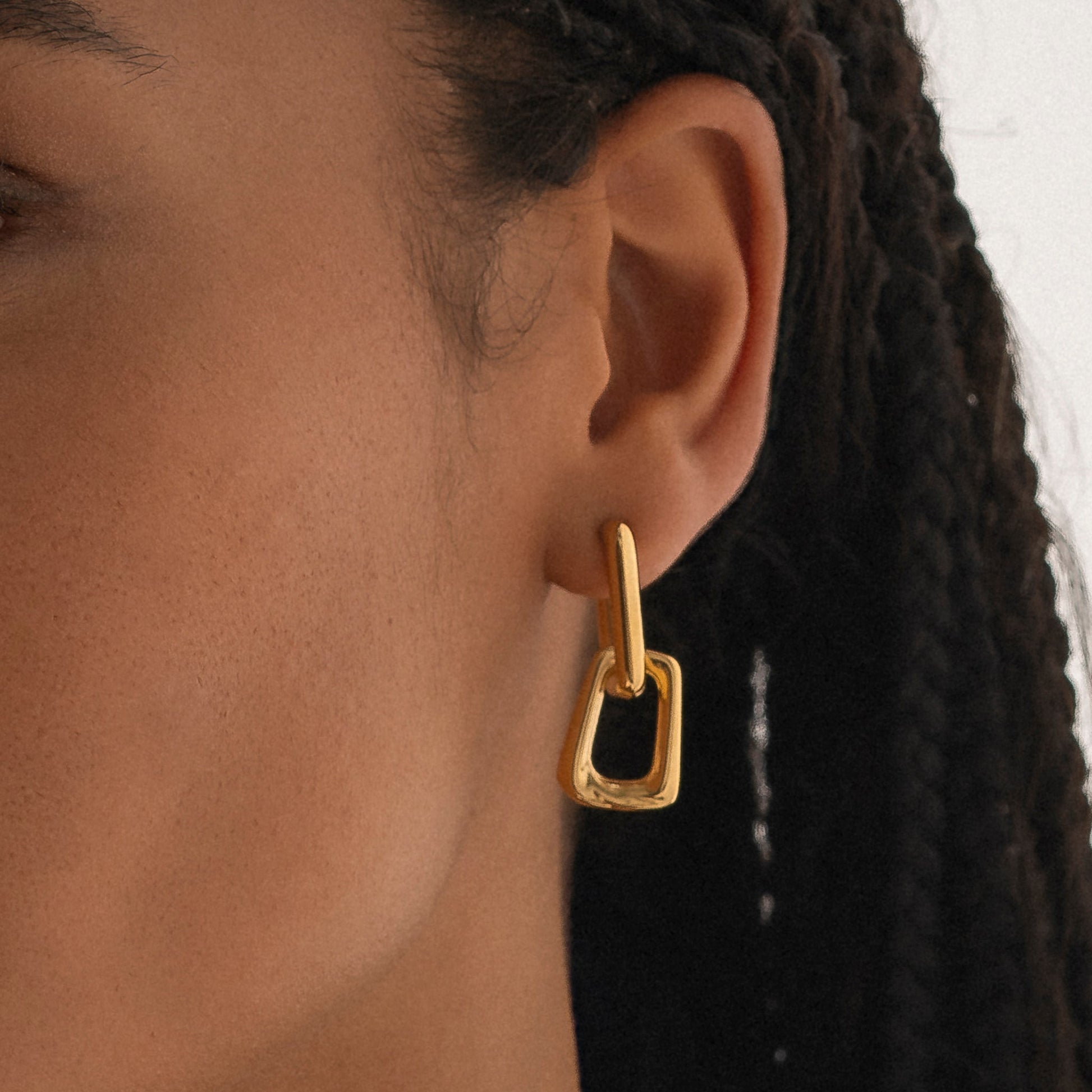 Bold style, built your way. These 14k gold-plated stainless steel hoop earrings feature a chunky tote-style upper hoop paired with a removable lower hoop for two looks in one. Wear them full for maximum impact, or keep it minimal with just the top hoop either way, you're in control of the statement.