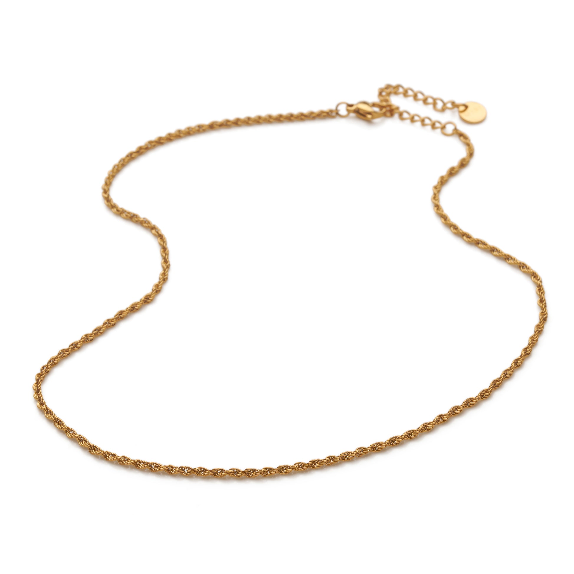 Add a touch of refined texture to your jewellery collection with this 14k gold-plated stainless steel twisted cord chain. Its intricate twisted design creates a sophisticated, yet bold look that stands out on its own or pairs perfectly with your favourite pendants. The high-quality gold plating ensures a warm, radiant finish, while the durable stainless steel construction offers lasting strength. Finished with a secure lobster clasp, this chain is both stylish and practical, providing a luxurious look that is ready for everyday wear or special occasions.